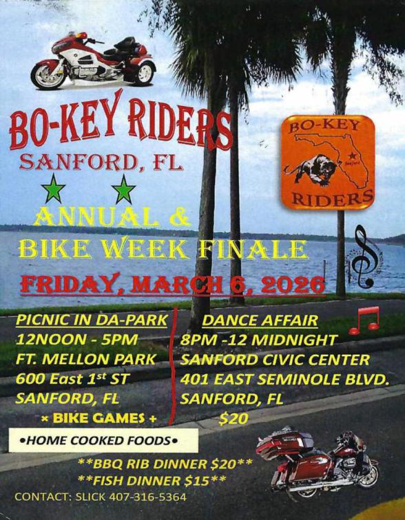 March 6 - Bo-Key Riders Picnic in Da Park - Sanford, Fl